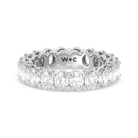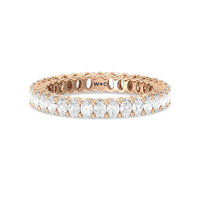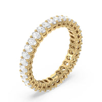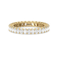 This stunning ring features prong set oval cut diamonds for a modern twist. A classic shared prong setting is designed to draw in the light so each diamond shines bright set in gold.