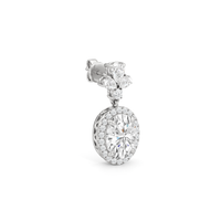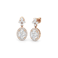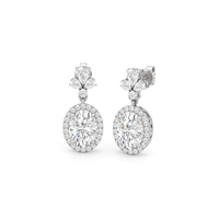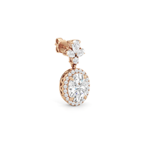 The exceptionally elegant Rose Drop Earrings bring the innate allure of the beloved flower of love to life. Each earring features a diamond post, with an oval diamond drop accompanied by a matching oval halo. As the thorny yet beautiful rose embodies true love, the expertly set precious stones capture the very essence of unfeigned sophistication in fine jewelry.