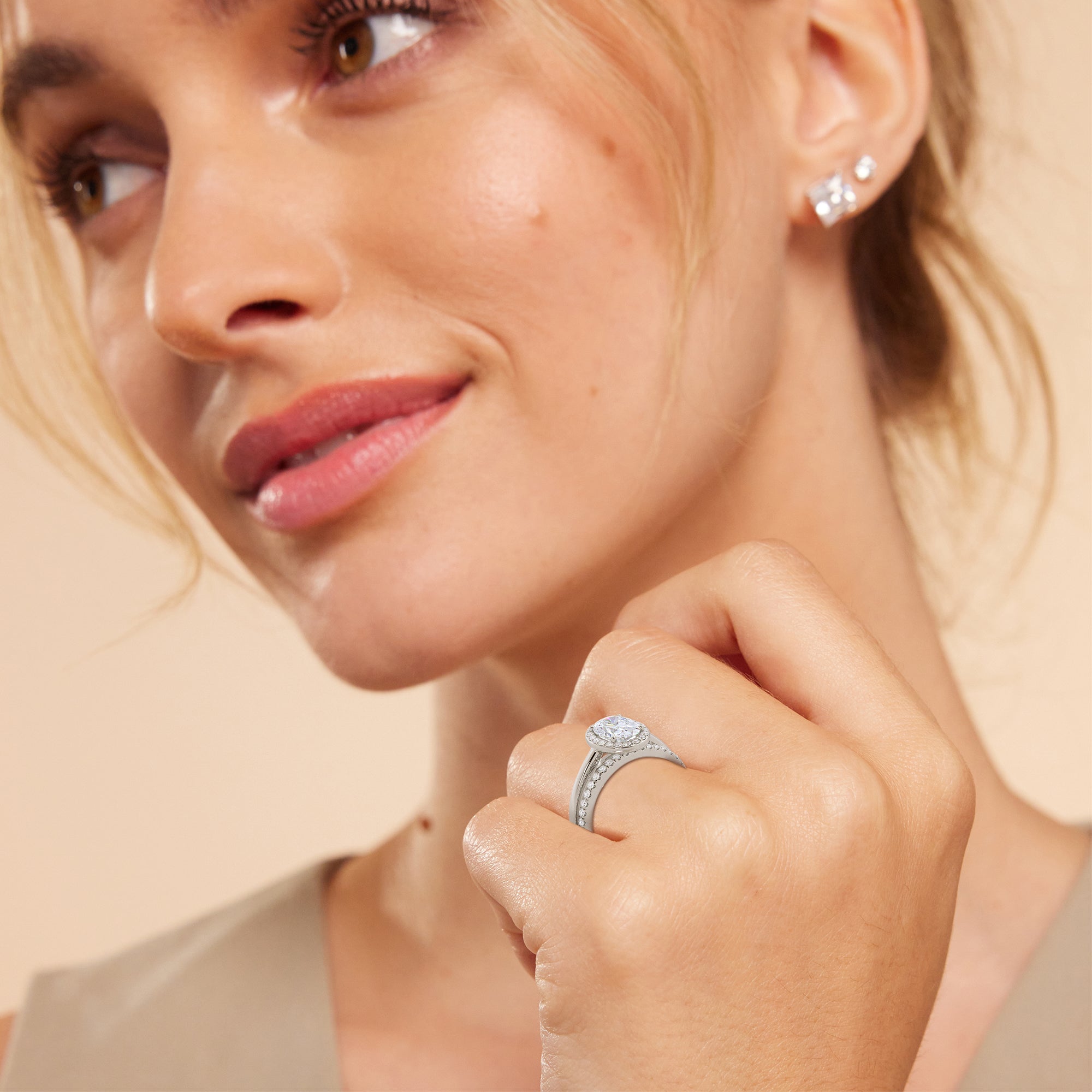 Discover a stress-free way to find your dream ring with With Clarity's unique approach: Browse. Try. Buy. With our at Home Preview service, you can explore over 8,000 customization options from the comfort of your own home. Select two rings to try on, customized to your preferences in size, metal, shape, and carat. Whether you're lounging at home or out for drinks, take your time to truly connect with your options. Consult with your partner or friends, snap some selfies, and return within 7 days. When you're ready, simply return to our site to order the perfect ring that reflects your unique style and love story.