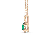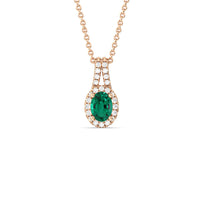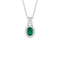 The refined elegance of this gemstone pendant allows you to elevate the look of any outfit in an instant. The pendant features a Oval Shape Created Emerald on its center framed by a classic halo of lab-grown diamonds. A diamond-studded split bale holds the halo-wrapped colored gem.
