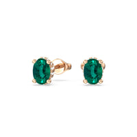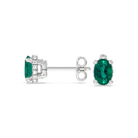 These lustrous gemstone studs display the elegance of the less-is-more aesthetic. Oval Shape Emeralds dot the earrings with vivid beauty. Underneath each colored gem is an under halo of lab-grown diamonds for that unexpected sparkle.