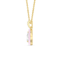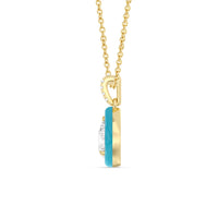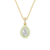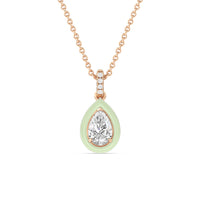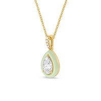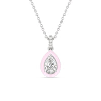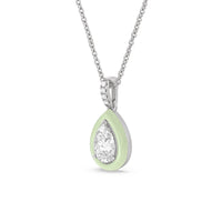 A lovely necklace to add when creating a playful jewelry capsule. This piece features a pear diamond framed in a ceramic finished bezel.