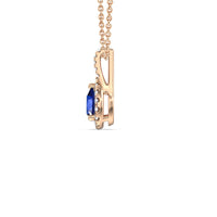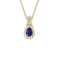 The refined elegance of this gemstone pendant allows you to elevate the look of any outfit in an instant. The pendant features a Pear Created Sapphire on its center framed by a classic halo of lab-grown diamonds. A diamond-studded split bale holds the halo-wrapped colored gem.