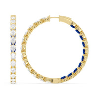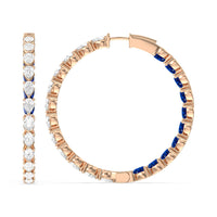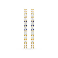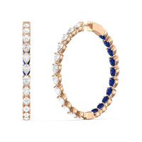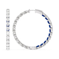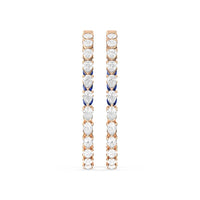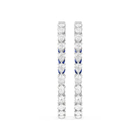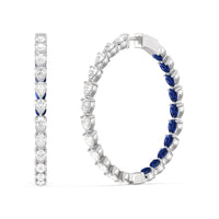 You'll love the way these earrings shine. This highly versatile pair of diamond and created sapphire hoops features an inside-out tracing of pear stones. The pear-cut or teardrop-shaped stones offer a mesmerizing play of brilliance and sparkle given their two different ends - one is rounded, the other is pointed. The continuous line of the elongated gem also looks very flattering and feminine, which helps balance the boldness of these big hoop earrings.