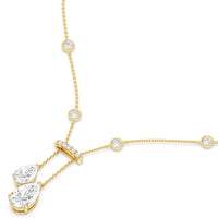 Get ready to make a grand entrance with our Pear Drop Station Necklace, a stunning piece that combines the timeless beauty of oval and pear-shaped drops with the brilliance of round diamond bezel stations. This necklace is a red carpet stunner, designed to captivate attention and make you the center of focus at any event.