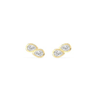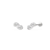 These flatback studs are detailed with a duo of diamonds on pear-shaped bezels. You won't ever have to take them off. The flat backing, where a smooth disc sits flush behind the earlobe, offers no-poke comfort 24/7.