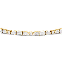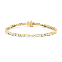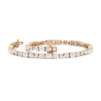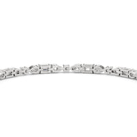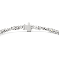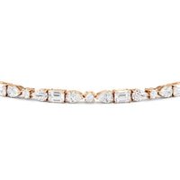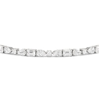Emerald-cut diamonds are flanked by elegantly contoured pear diamonds in this chic and elegant tennis bracelet. Enhancing the brilliance of this exceptionally gorgeous piece are round diamonds, each on claw prongs. Let this diamond bracelet orbit your wrist with an alluring style.