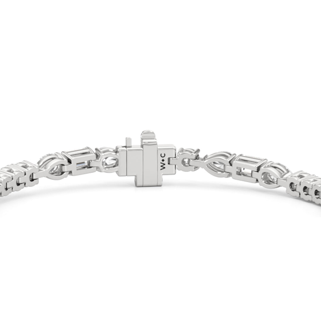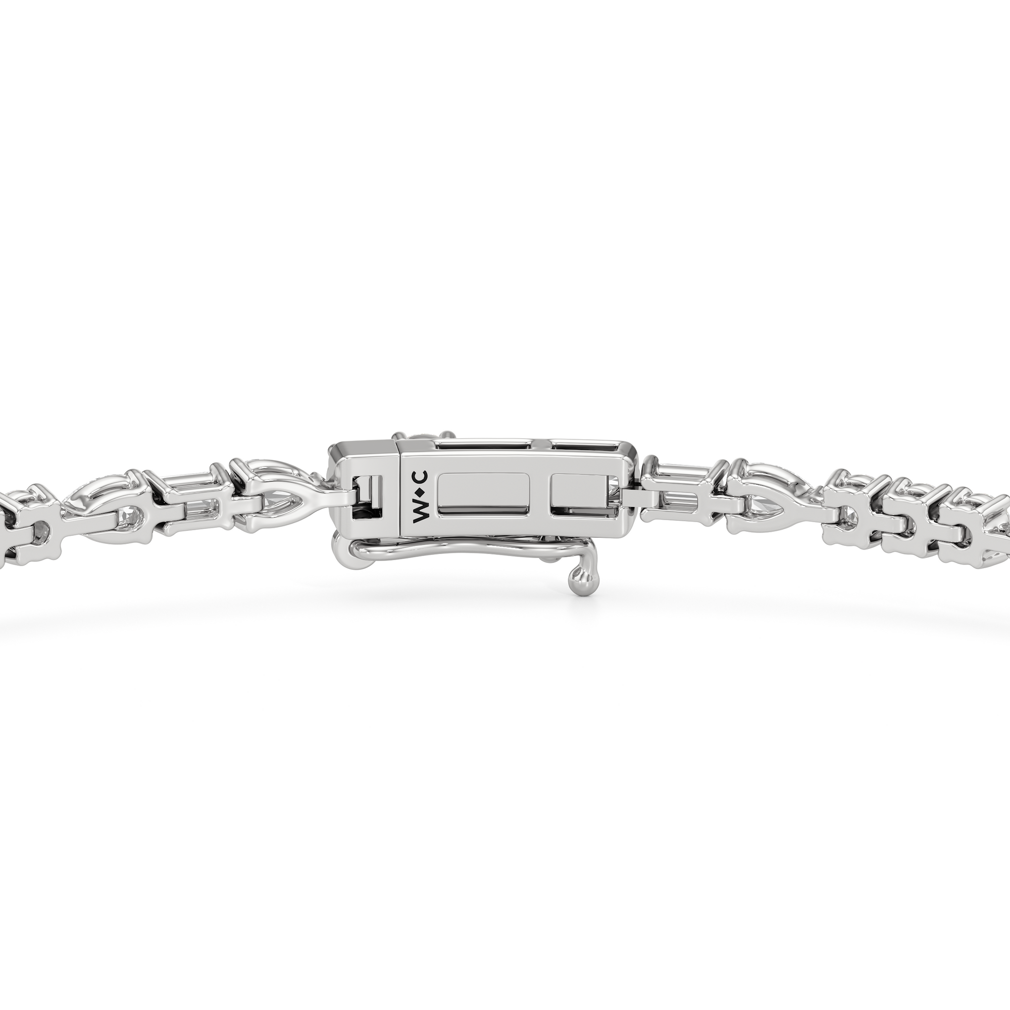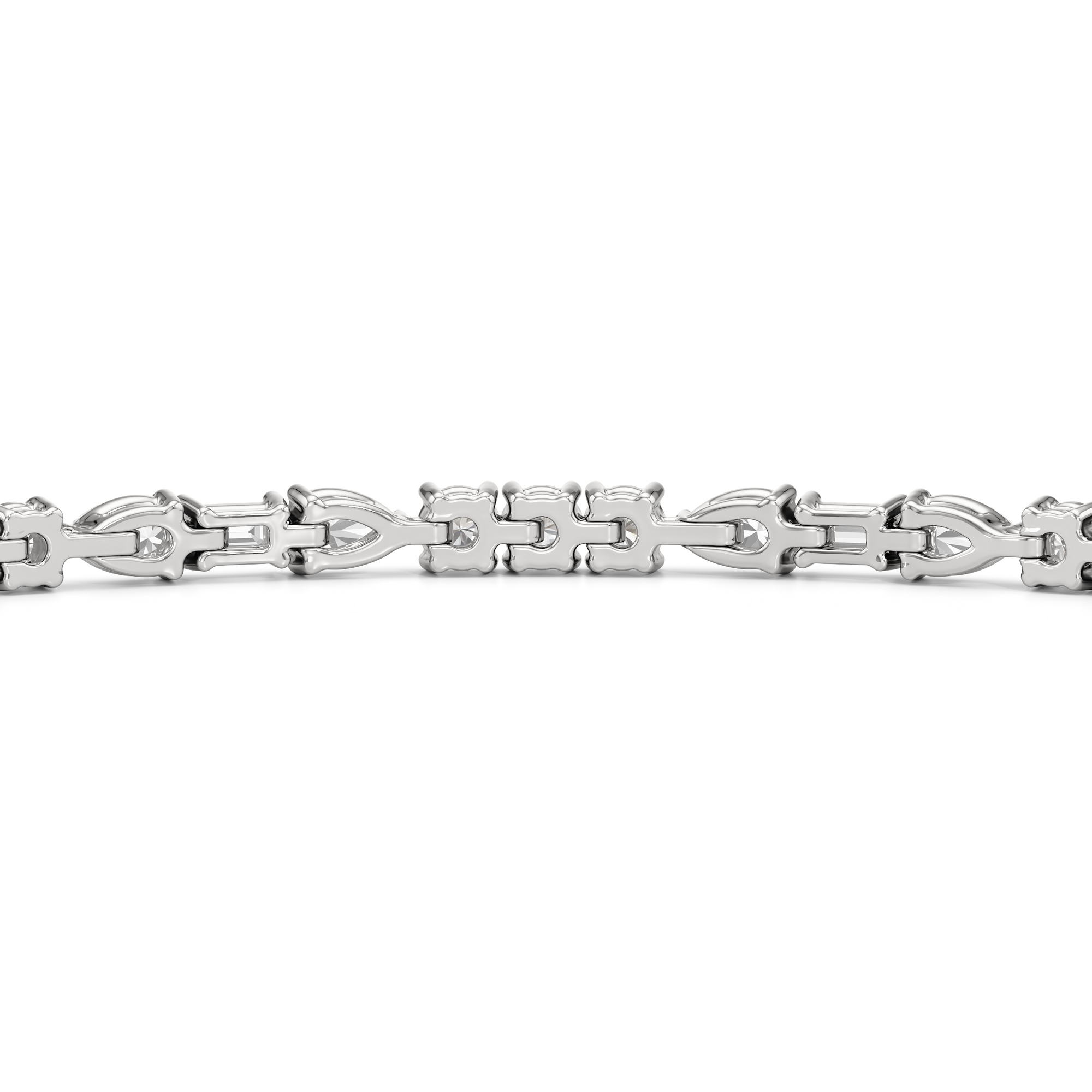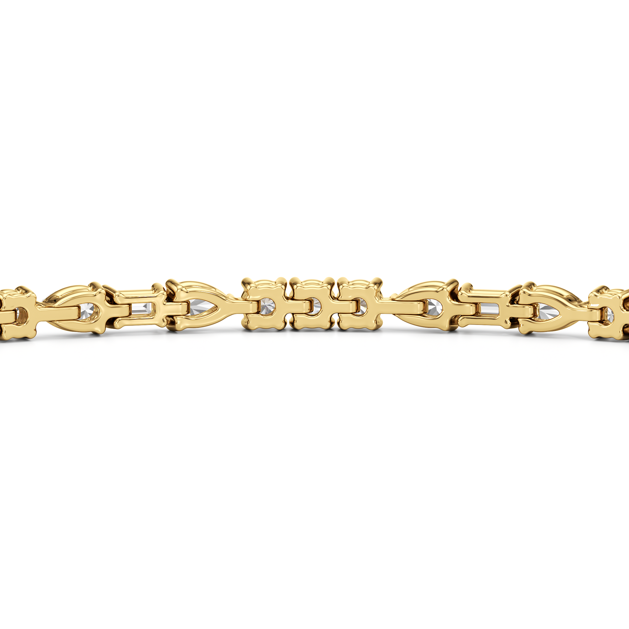 This diamond tennis bracelet is proof that good things come in threes. A triad of round diamonds lay after each trio of pear-emerald-pear diamonds. They create a stylized row marked by symmetry and geometric beauty. Wear it as a standalone piece or stack it with a chunky chain or a classic bangle.