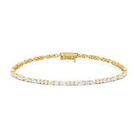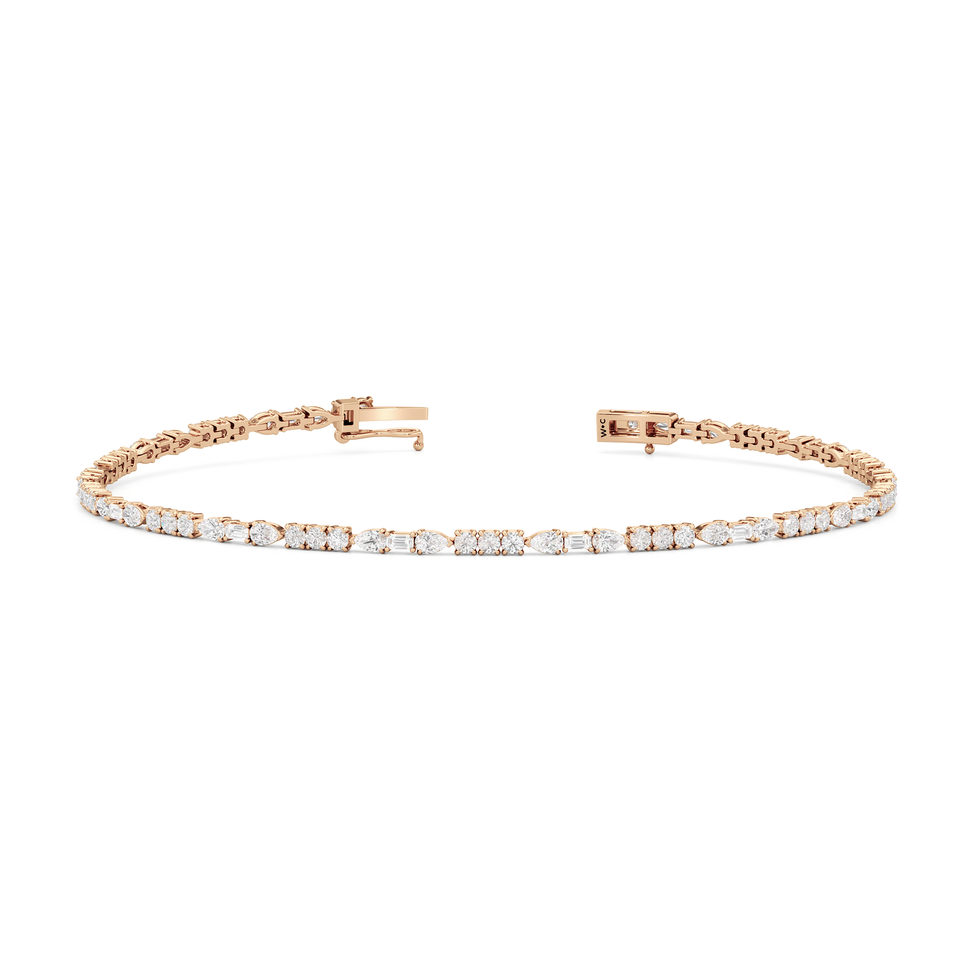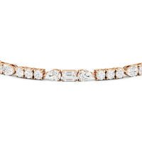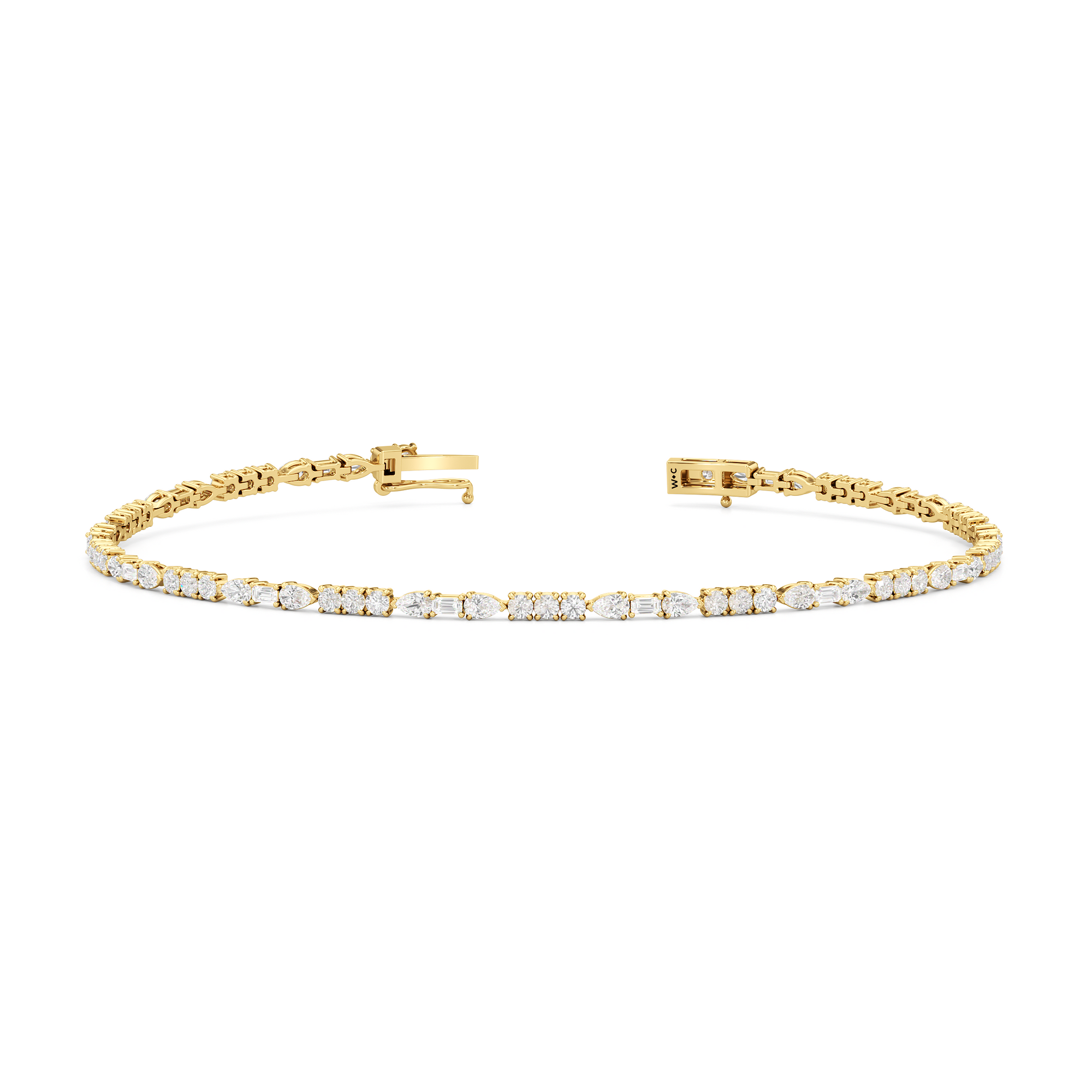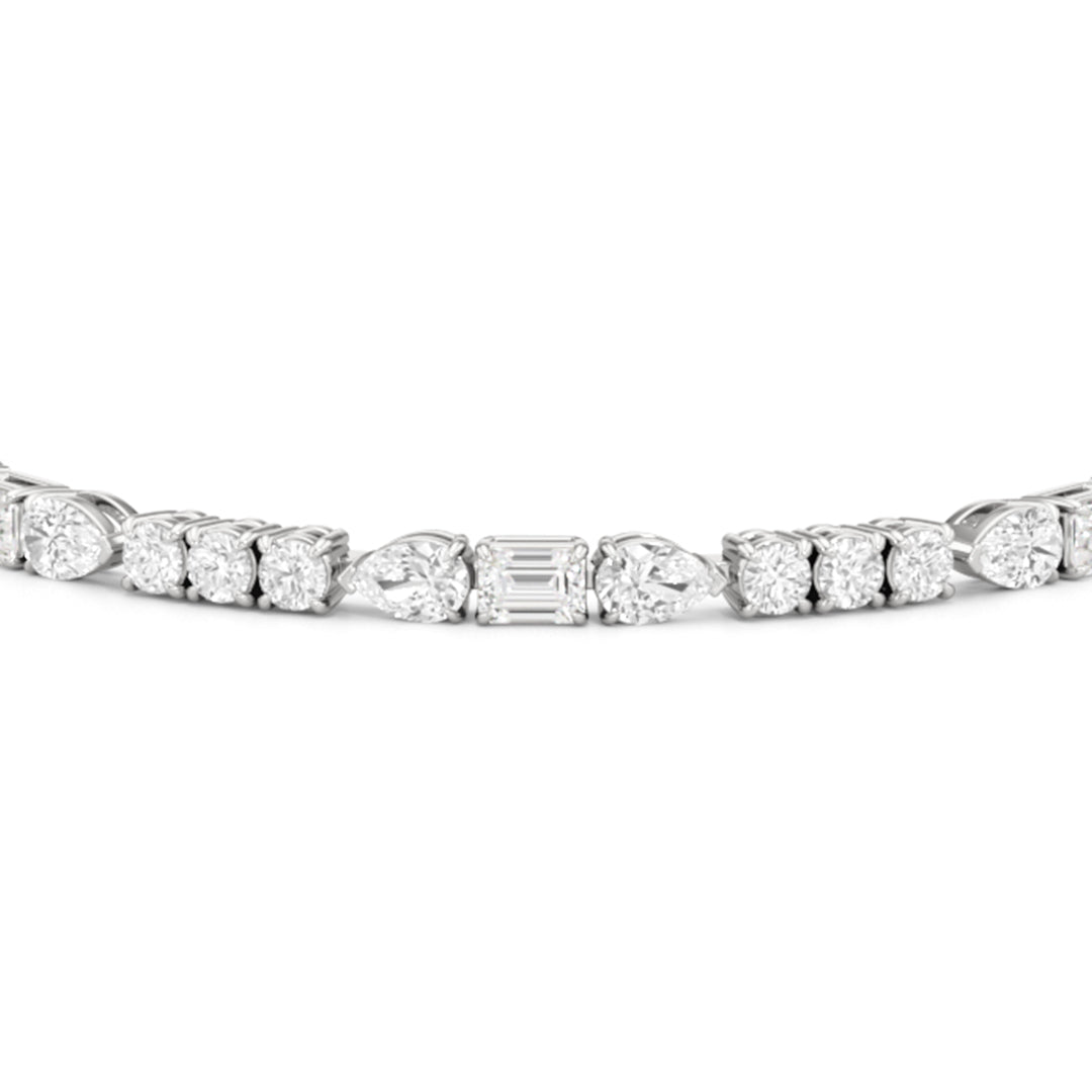 This diamond tennis bracelet is proof that good things come in threes. A triad of round diamonds lay after each trio of pear-emerald-pear diamonds. They create a stylized row marked by symmetry and geometric beauty. Wear it as a standalone piece or stack it with a chunky chain or a classic bangle.