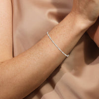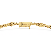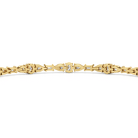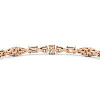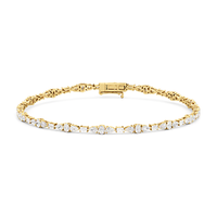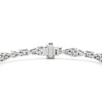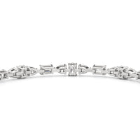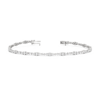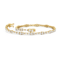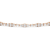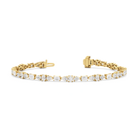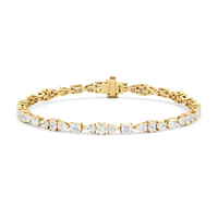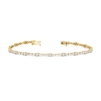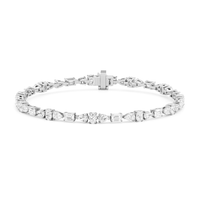 When the occasion calls for a brilliant shine, this diamond tennis bracelet is ready to make a statement. The bracelet features a stunning pattern of oval, pear, and emerald-cut diamonds, all set by hand by a qualified jeweler.