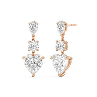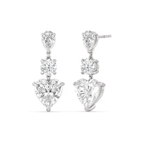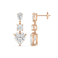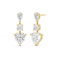 Perfect for any special day, this pair of diamond earrings is sure to give your look a dazzling finish. Each dangling earring features a trio of diamonds in pear, round, and heart shapes; together, they reflect light in an extra brilliant way.