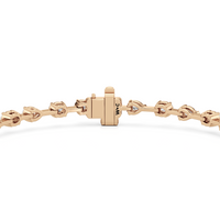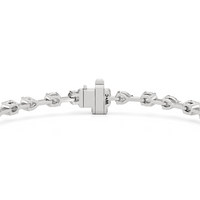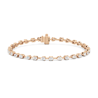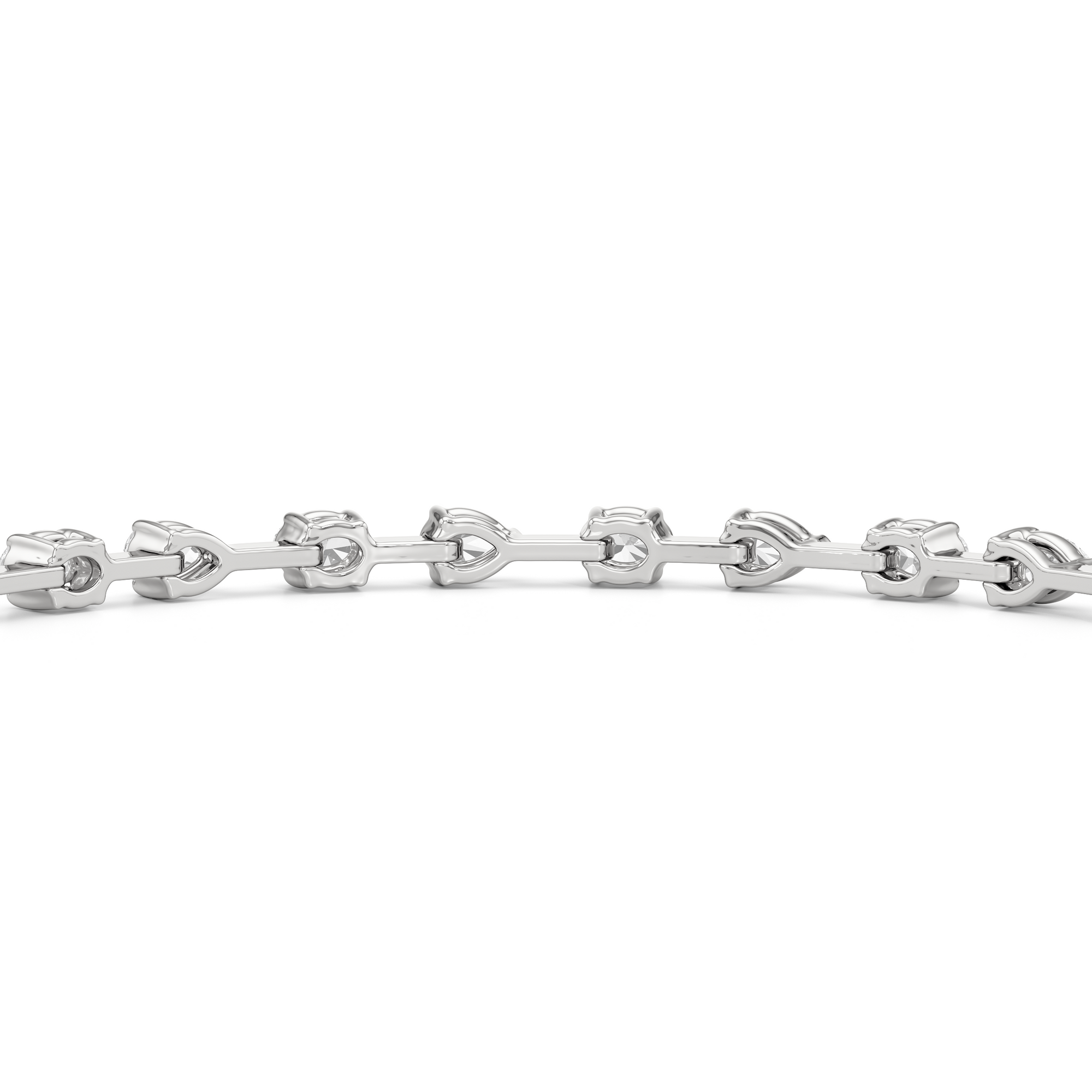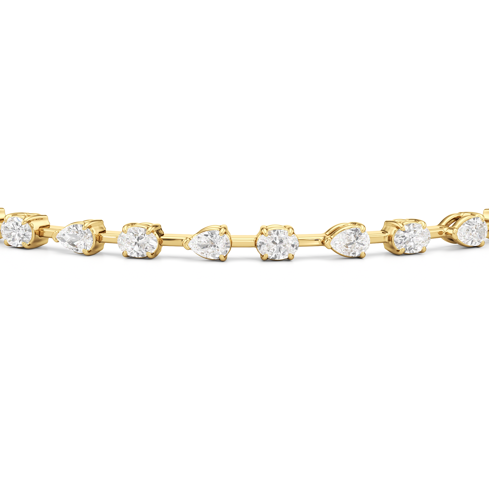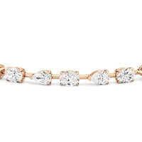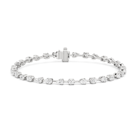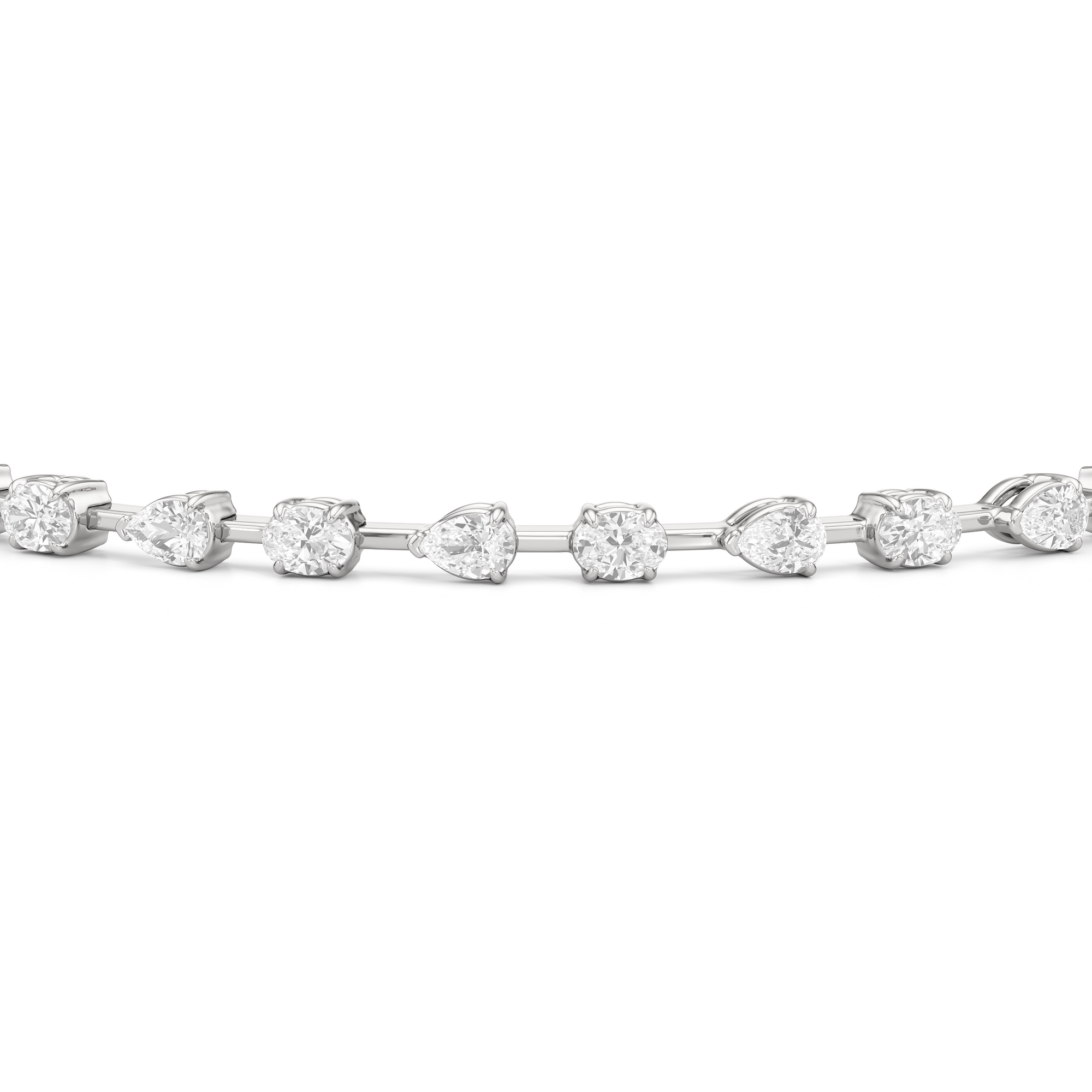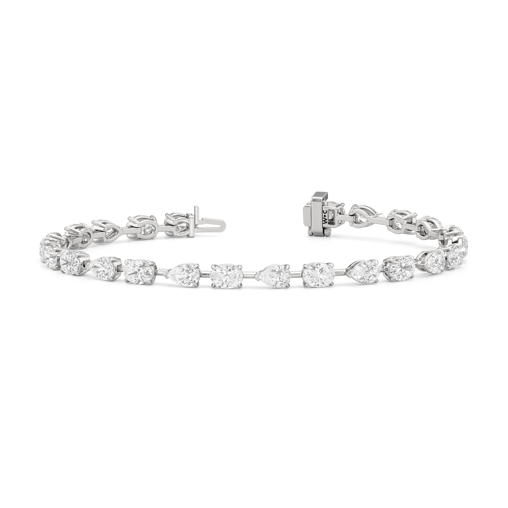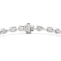 This diamond bracelet's allure is all about order and balance. It is designed with an alternating pattern of pear and oval-cut diamonds, with each gem carefully set on a claw-prong basket. The space between each diamond allows light to hit each stone from all angles.