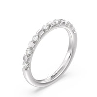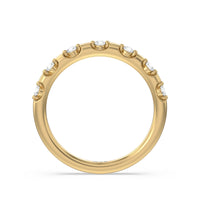 Shimmering pave diamonds cascade down this band to create a timeless beauty that will never go out of style. Designed to be paired with our petal 6 claw petal hidden accent engagement ring for a simple and sophisticated look.