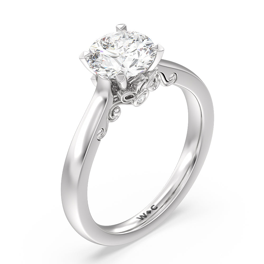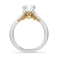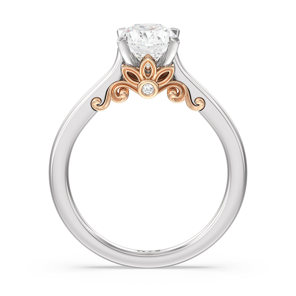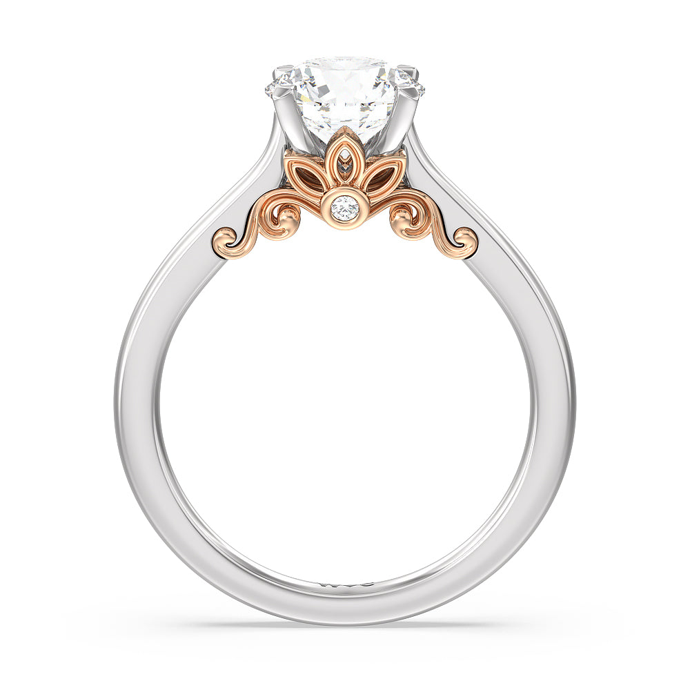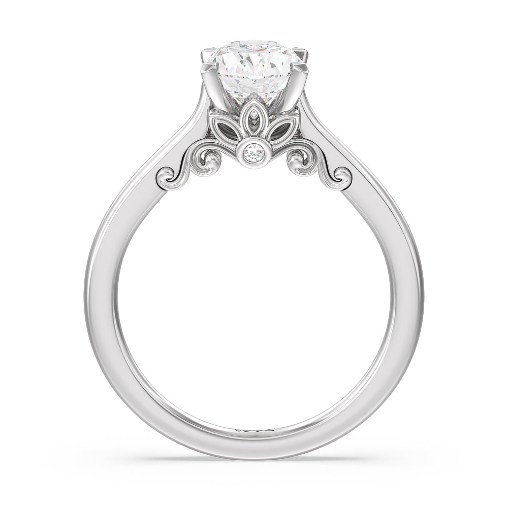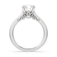 A deceptively simple style hides a unique flower scroll gallery detail with a hidden diamond accent detail.
