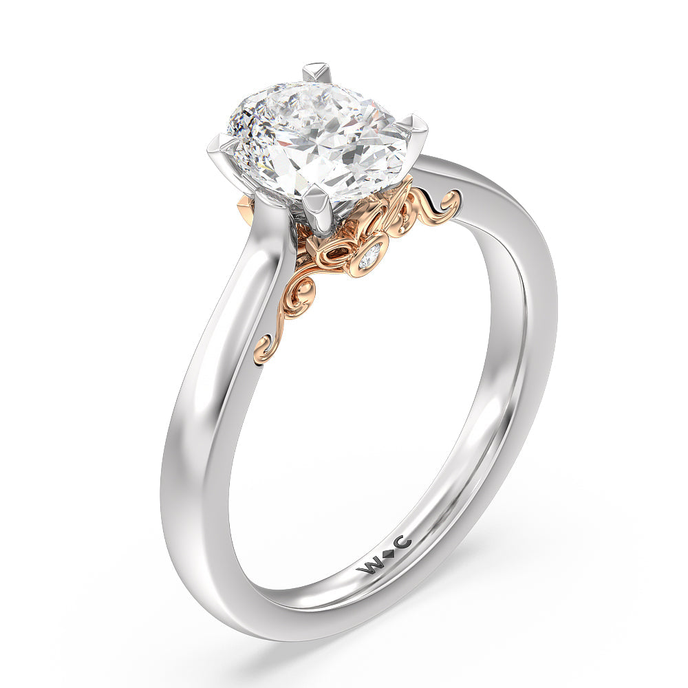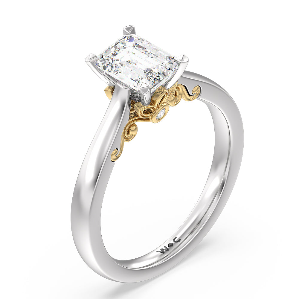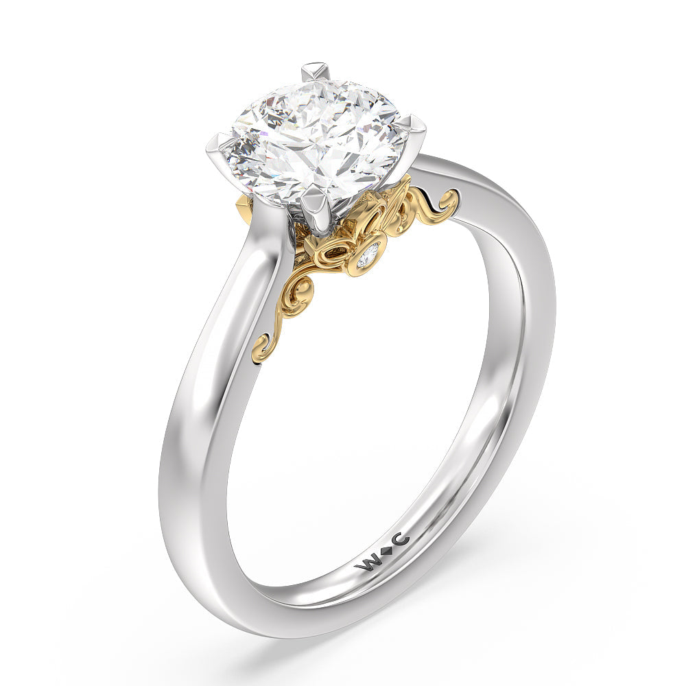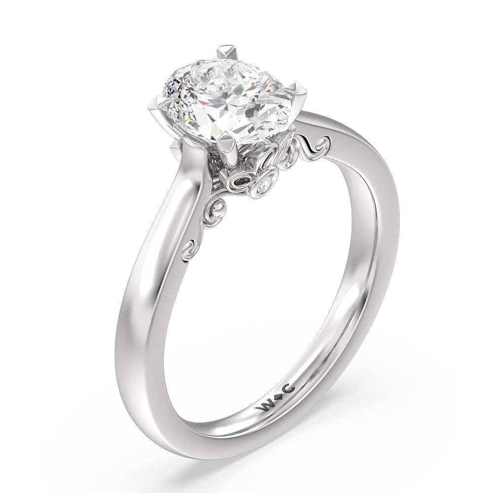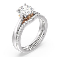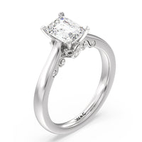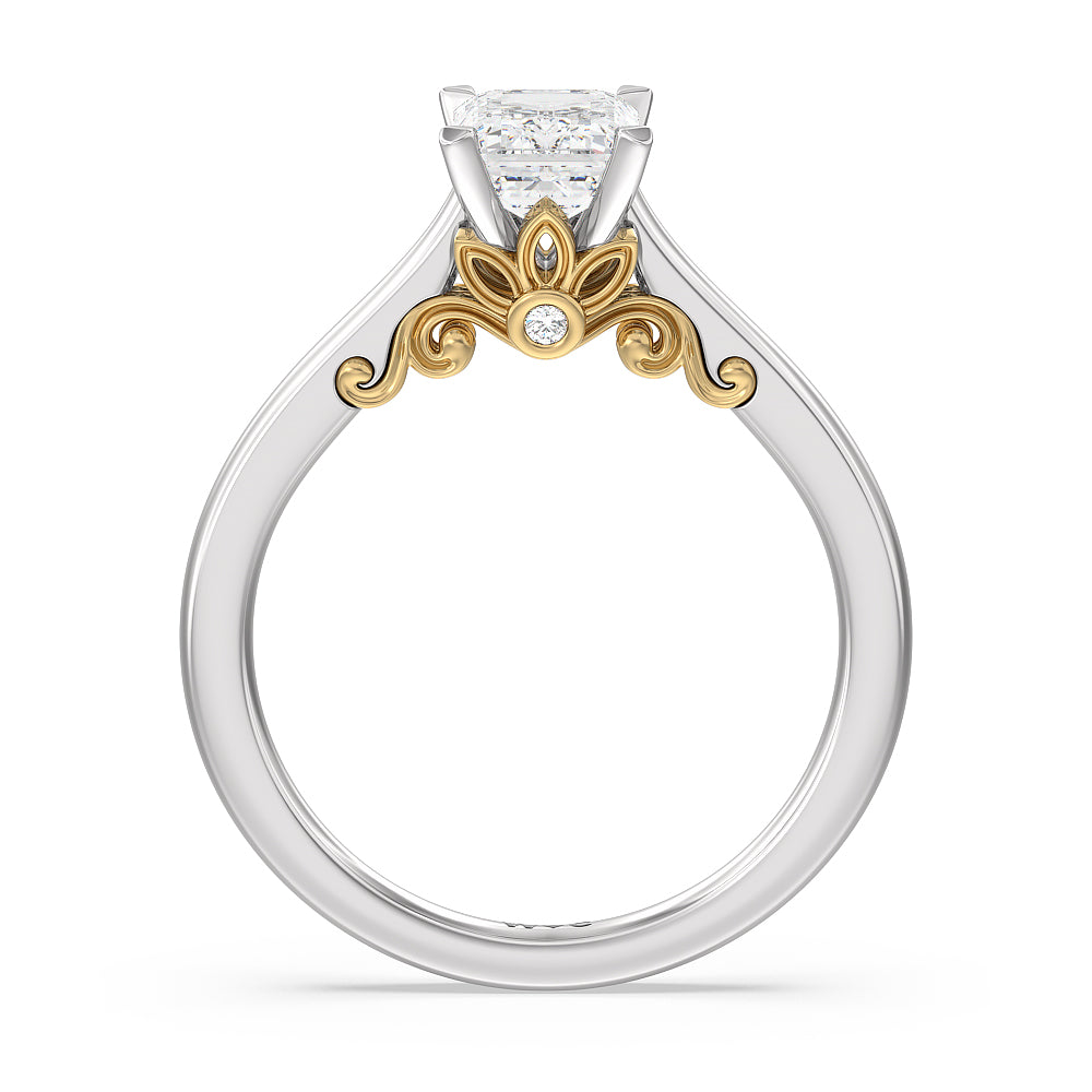 A deceptively simple style hides a unique flower scroll gallery detail with a hidden diamond accent detail.