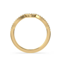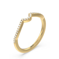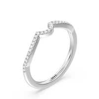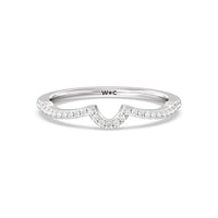 This curved diamond set wedding band is perfectly contoured to complement our petal peekaboo diamond engagement ring for a simple and sophisticated look.