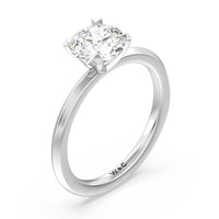 Slim, sleek, and sophisticated, this engagement ring has the perfect minimalist style. Its clean and slender knife-edge band serves as the perfect base for a delicate solitaire diamond. The classic, barely-there aesthetic of this ring will effortlessly suit any finger.