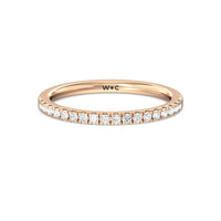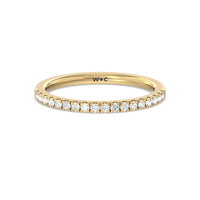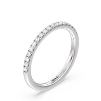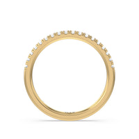 Shimmering pave diamonds cascade down this band to create a timeless beauty that will never go out of style. Designed to be paired with our petite pave hidden halo engagement ring for a simple and sophisticated look.