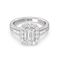Tapering Baguette Halo Engagement Ring