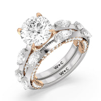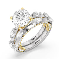 Celestia Marquise Set Studded Gallery Wedding Band - 14KT White & Yellow Gold