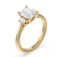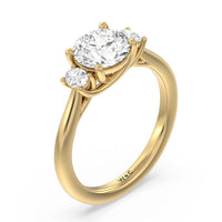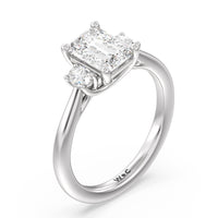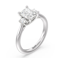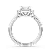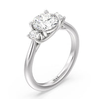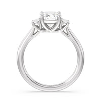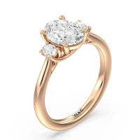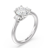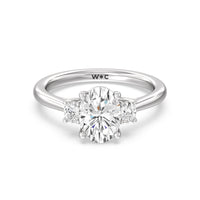 For the bride-to-be whos drawn to classics with a twist. This three-stone engagement ring features a dominant diamond flanked by oval side stones. The gorgeous gems are set in a beautiful trellis basket for that unexpected romantic touch.