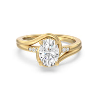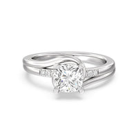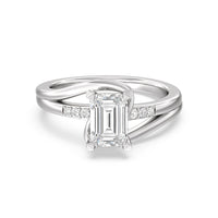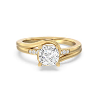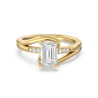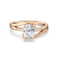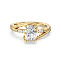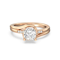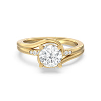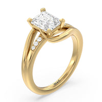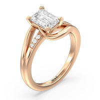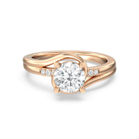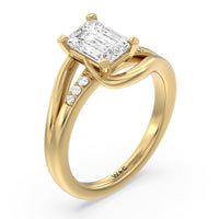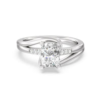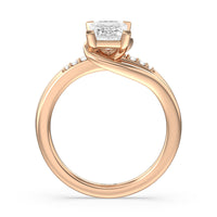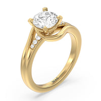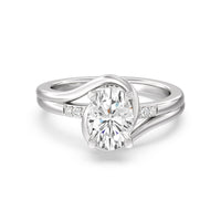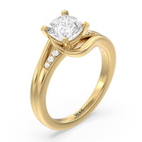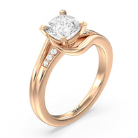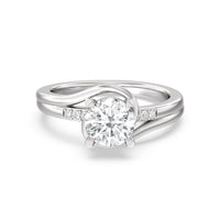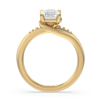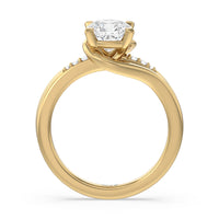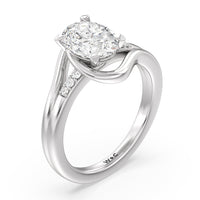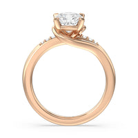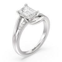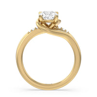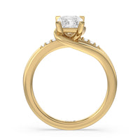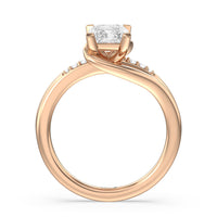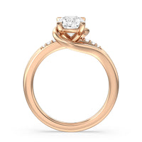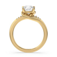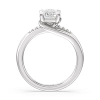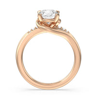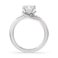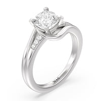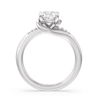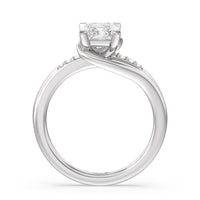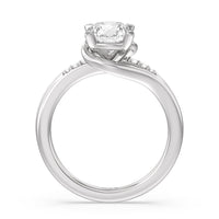 Seal your bond and mark the beginning of your intertwined lives with this crossover engagement ring. The diamond-studded band features a subtly spiraling bypass accent that gently embraces the mesmerizing center stone. With its contoured profile, this ring will stand out while remaining simple and elegant.