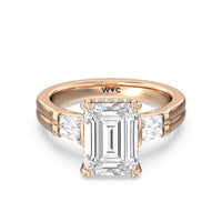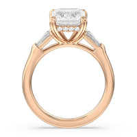 Emerald Cut Elegance Twin Baguette Side Stone Engagement Ring with Lab Grown Diamond in 14KT Rose Gold view 2