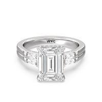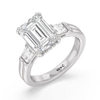 Emerald Cut Elegance Twin Baguette Side Stone Engagement Ring with Lab Grown Diamond in 14KT Platinum view 2