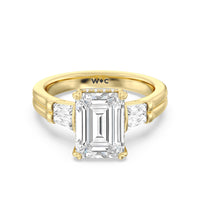 Emerald Cut Elegance Twin Baguette Side Stone Engagement Ring with Lab Grown Diamond in 14KT Yellow Gold view 2