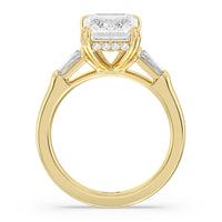 Emerald Cut Elegance Twin Baguette Side Stone Engagement Ring with Lab Grown Diamond in 14KT Yellow Gold view 3