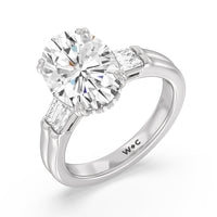 Oval Cut Elegance Twin Baguette Side Stone Engagement Ring with Lab Grown Diamond in 14KT Platinum view 3