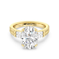 Oval Cut Elegance Twin Baguette Side Stone Engagement Ring with Lab Grown Diamond in 14KT Yellow Gold view 2