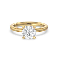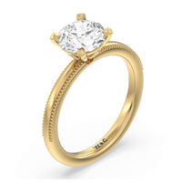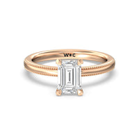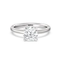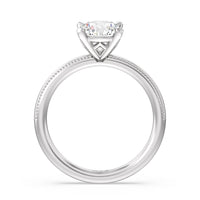 Exuding an air of playful elegance is this solitaire engagement ring with the gorgeous lone diamond set in a four-prong kite basket. The hidden kite-shaped accent on the basket and the extra details on the band's shoulders make this ring part classy and part whimsy, and definitely full of beauty.