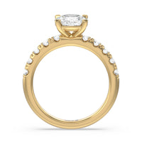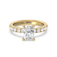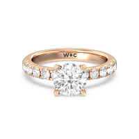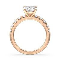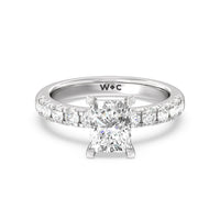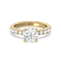 Glamorous yet refined, this engagement ring makes a statement with its classic diamond centre stone perched atop a diamond-traced band slightly broader than usual. This sparkly and sturdy engagement ring is the perfect choice for the bride-to-be who lives an active lifestyle and prefers a stylish yet practical ring design.