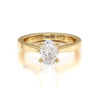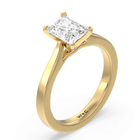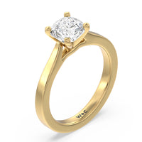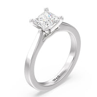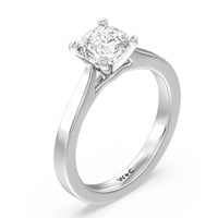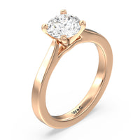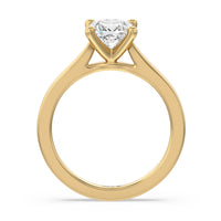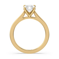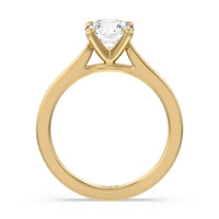 This classic cathedral solitaire ring combines the smooth finish of precious metal with a cathedral style head that lifts the center diamond up. Perfect to show off the sparkle of the center stone.
