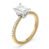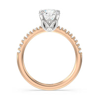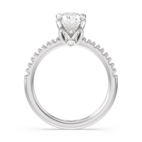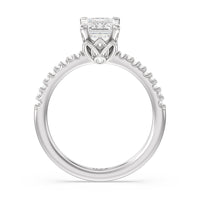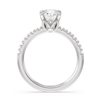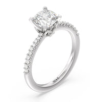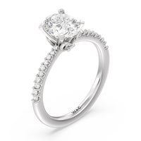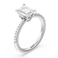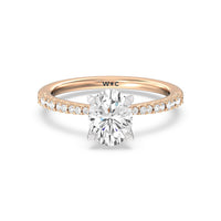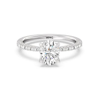A ring inspired by nature, featuring a hidden diamond accent within the petal shaped gallery. This design truly sparkles with sophistication due to the diamond pave band.