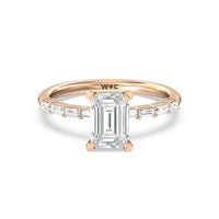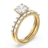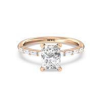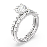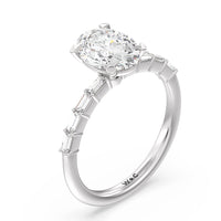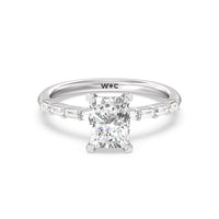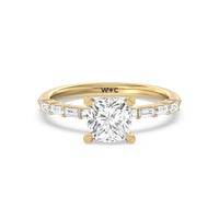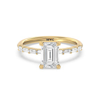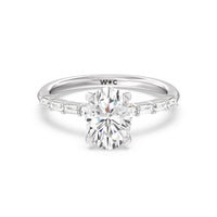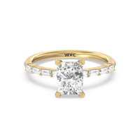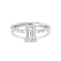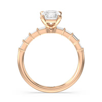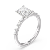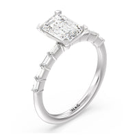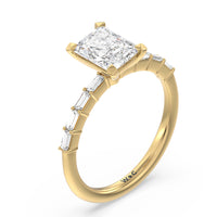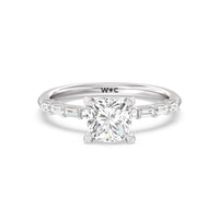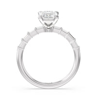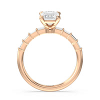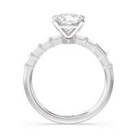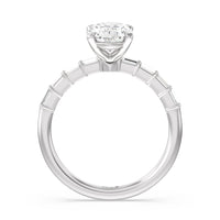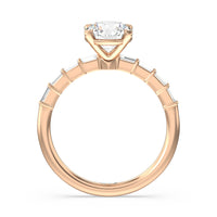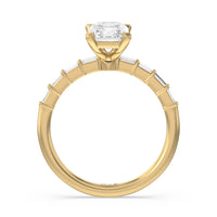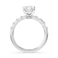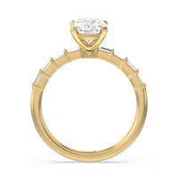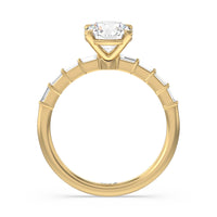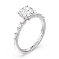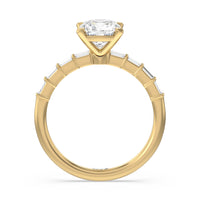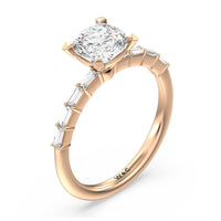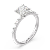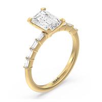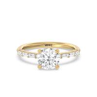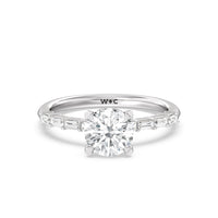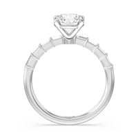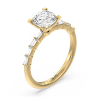 Go a little nontraditional with this solitaire designed to look sophisticated yet just slightly understated. Mounted on a four-prong setting is a center diamond that shines confidently. Enhancing its dazzling glitter are baguette-cut diamonds trailing down the shoulders of the band.