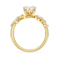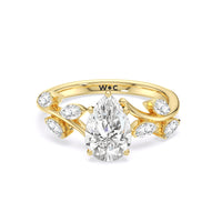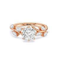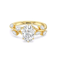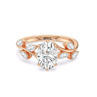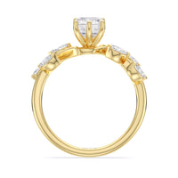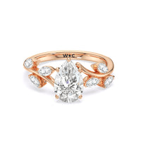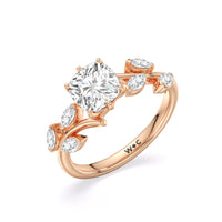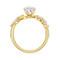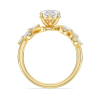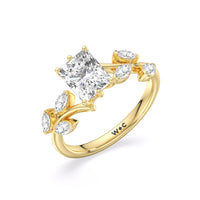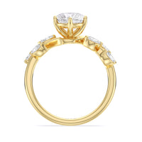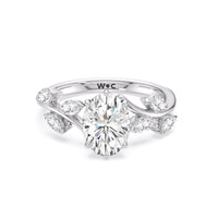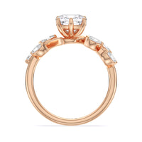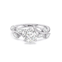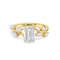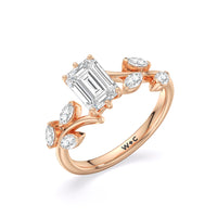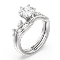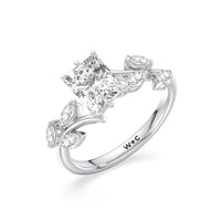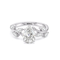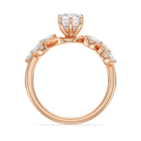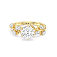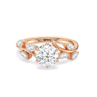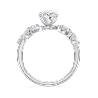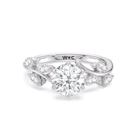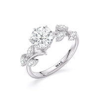 Tell the story of your bond that only grows and grows through this vine-inspired diamond engagement ring. Slender, wispy vines in precious metal come adorned with diamond leaves and creep towards a central point. A diamond on a six-prong setting marks the spot where the vines meet.