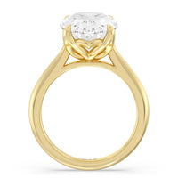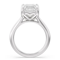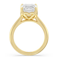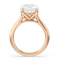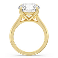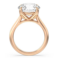 This solitaire diamond engagement ring is a true showstopper, with brilliance you cannot miss. Featuring a mesmerizing diamond center stone, it is securely held by four claw prongs in a stylized tulip inspired four-petal basket, blending elegance with artistry. The cathedral shank enhances its grandeur, offering a flattering silhouette that exudes quiet luxury. Designed for both beauty and comfort, the ring boasts a full comfort fit with a rounded shank, ensuring effortless wear. This cathedral luxury engagement ring is a stunning choice that embodies timeless sophistication.
