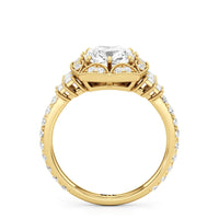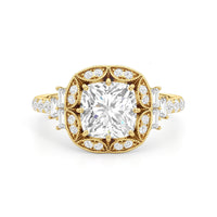 Just as the Art Deco crown of the Chrysler Building stands out boldly above Manhattan’s crowded skyline, the Crown Ring attracts the eye with its distinctive design. It captures the vivid spirit of the building’s iconic arched steelwork, with its striking scalloped pattern surrounding the cushion-cut diamond center stone. With trios of baguette diamonds serving as side stones and round diamonds tracing the band, this bold yet refined ring embodies the timeless glamour of New York and its soaring Art Deco masterpieces.