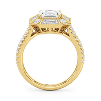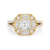 Inspired by the iconic Henry Hudson Bridge, this diamond ring captures the same harmony of modern engineering and refined Art Deco elegance—an exquisite blend of history, architectural brilliance, and fine jewelry design. Its design celebrates both the past and the future with its Asscher cut center diamond on an octagonal frame with step-cut trapezoid diamonds. A sleek diamond-paved V-shaped shank, which mirrors the sharp and angular edges of the bridge's suspension cables, refines the ring's faceted brilliance and brings a heightened sense of angular refinement.
