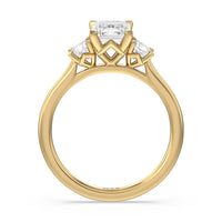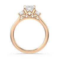 This ring will have everyone looking with its harmonious blend of structure and pizzazz. The slim, shiny band is topped by three glittering stones. Beneath the jewels is an attractive kite-inspired gallery that brings a modern, geometric edge to the ring.