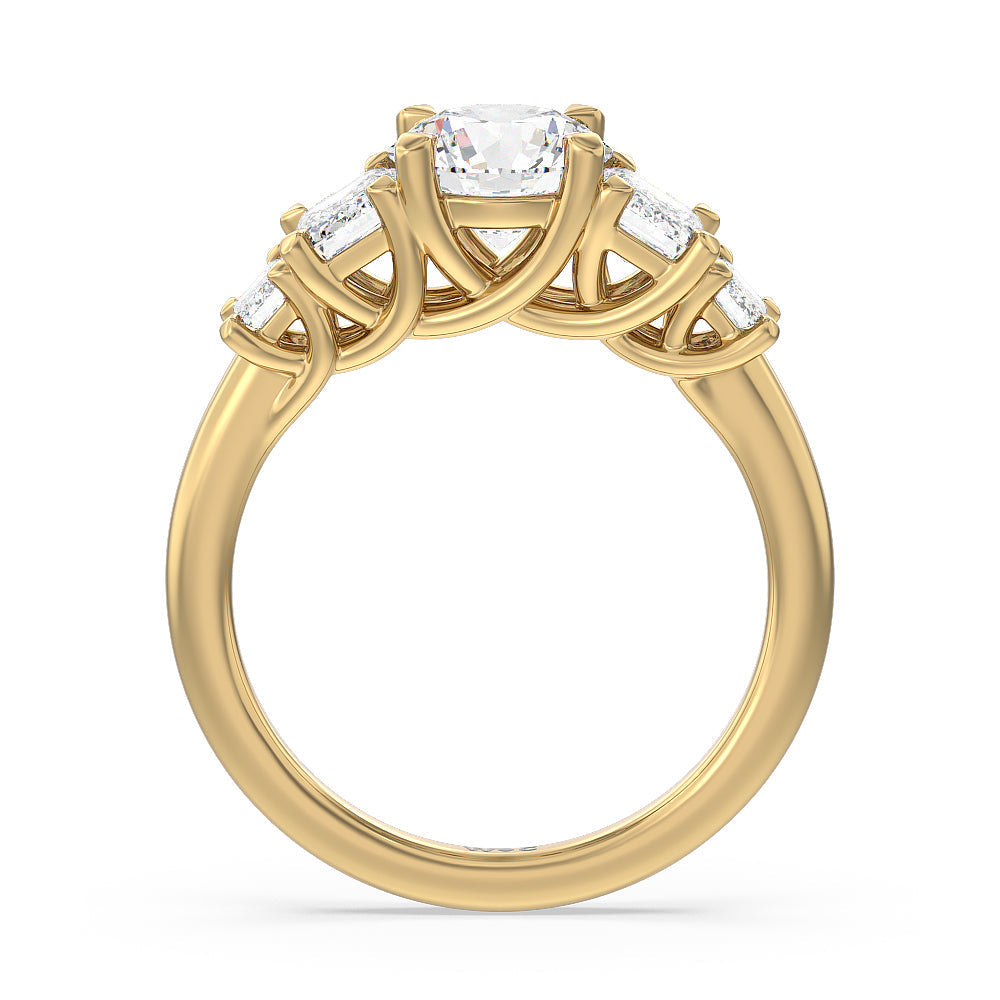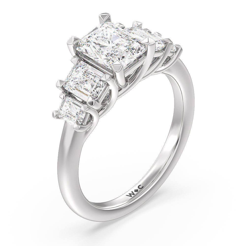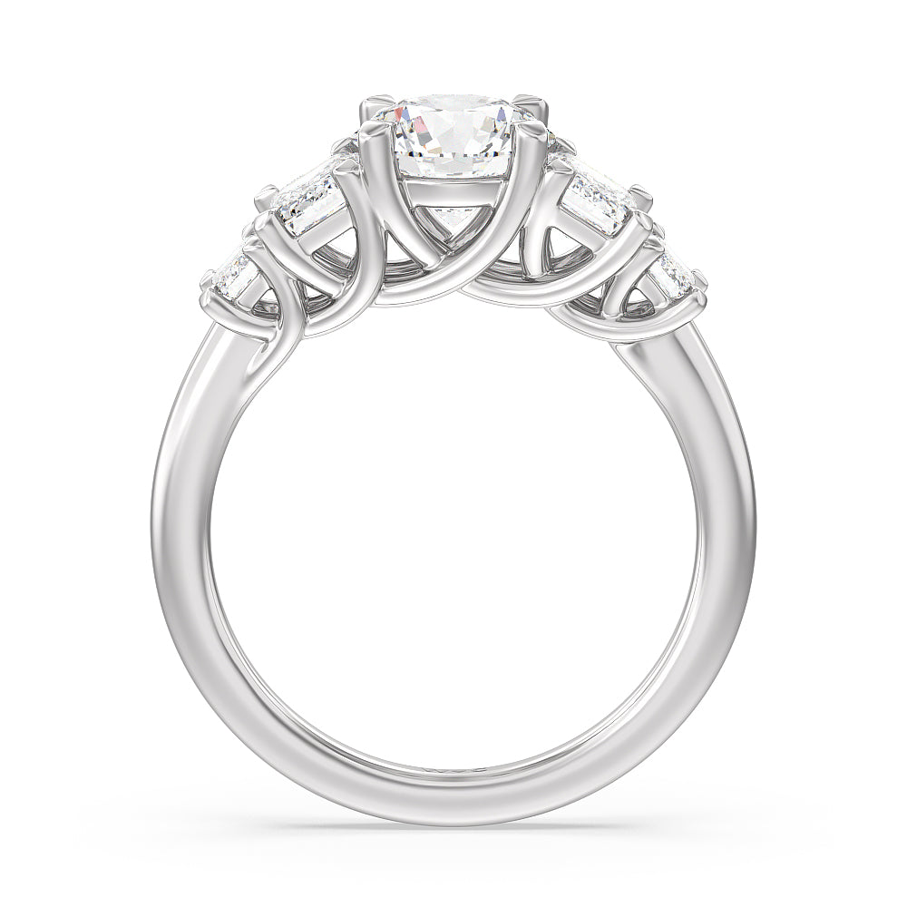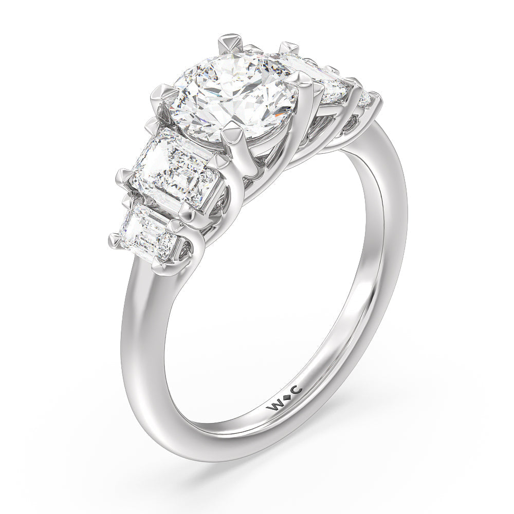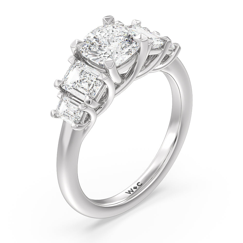 Pledge your love with a ring that delivers tons of eye-catching sparkle. This five-diamond engagement ring features interconnected prongs forming a trellis to securely hold the centerpiece. The trellis also creates windows for light to pass through and hit the stone, and give you that incredible shine.