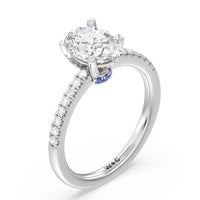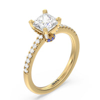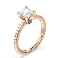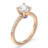 The highlight of the engagement ring is the diamond studded prongs inspired by the spires of the Veronica flower.