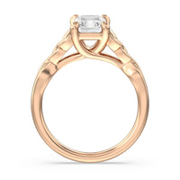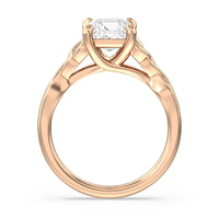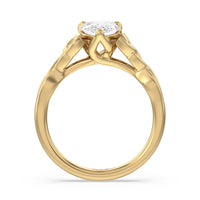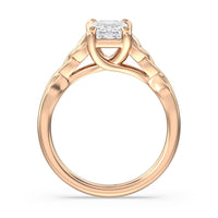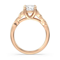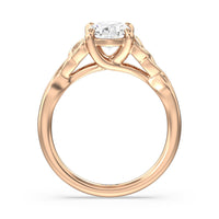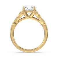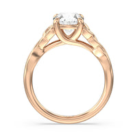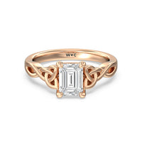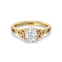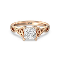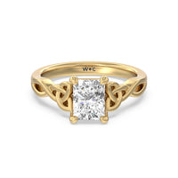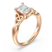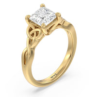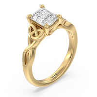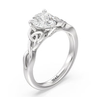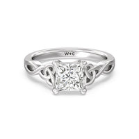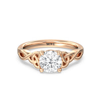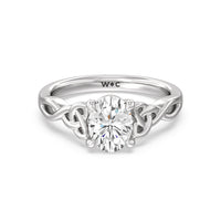 The dazzling center stone of this vintage engagement ring is showcased by a classic four-prong setting, beautifully enhanced by the intricate celtic detailing of its crossover shank. The elegant trinity knot design symbolizes eternal love and unity, making this a meaningful knot engagement ring.