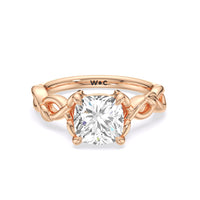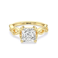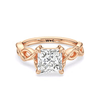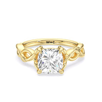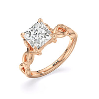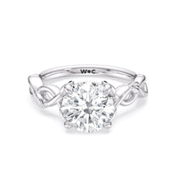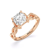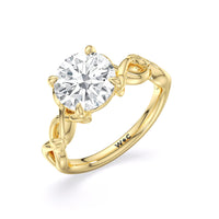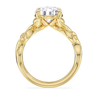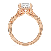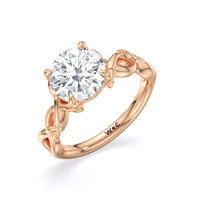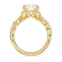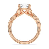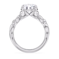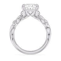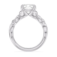 A ring of enchanting beauty, this engagement ring is artfully designed to represent your unbreakable bond. The ring has ornamental vine shoulders symbolizing how you, as a couple, are stronger together than apart. The twisting vine shoulders lead to a marvelous diamond center stone secured by claw prongs.