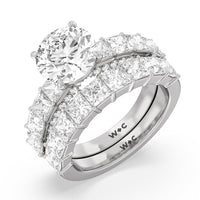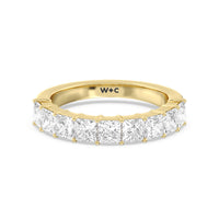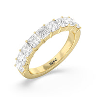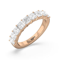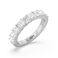 Shimmering pave diamonds cascade down this band to create a timeless beauty that will never go out of style. Designed to be paired with our princess band with studded front view engagement ring for a simple and sophisticated look.