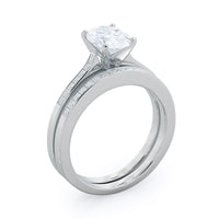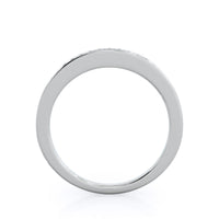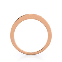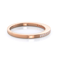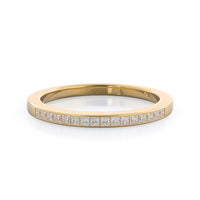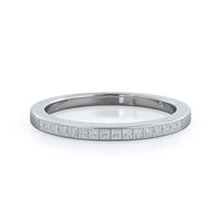 Everything about this engagement ring and its princess cut pave diamonds feels sleek and refined. So we topped its matching wedding band with the same channel set accent stones, fitting them together edge to edge for a wedding ring stack that looks absolutely covered in diamonds.