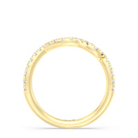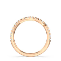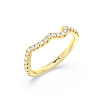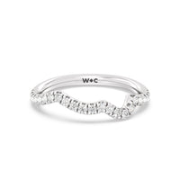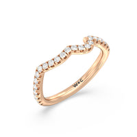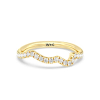 This curved diamond set wedding band is perfectly contoured to complement our regal vine engagement ring for a simple and sophisticated look.