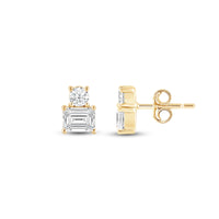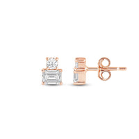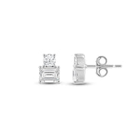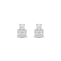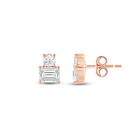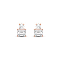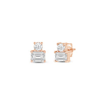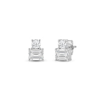 Toi et moi is French for "you and me." It is also a fancy and symbolic term to describe this pair of earrings. These two-stone diamond studs, or toi et moi diamond earrings, carry a round diamond and an emerald-cut diamond. The two stunning gemstones could represent a couple or two hearts becoming one. It could also signify love and friendship or the crossing of paths of two individuals.